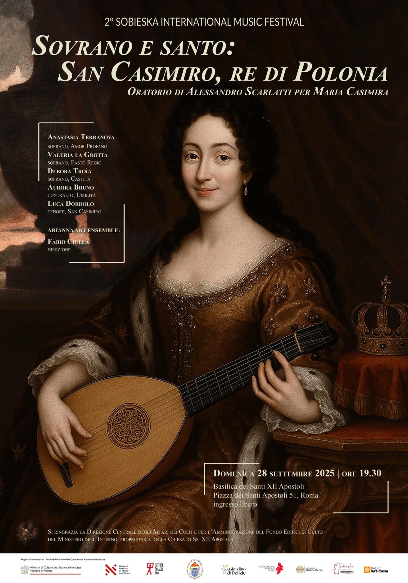 “Władca i święty: Święty Kazimierz, król Polski. Oratorium Alessandra Sacrlattiego dla Marii Kazimiery” w ramach II edycji Sobieska International Music Festival, podczas którego wykonane zostanie oratorium „Święty Kazimierz, król Polski” Alessandra Scarlattiego.